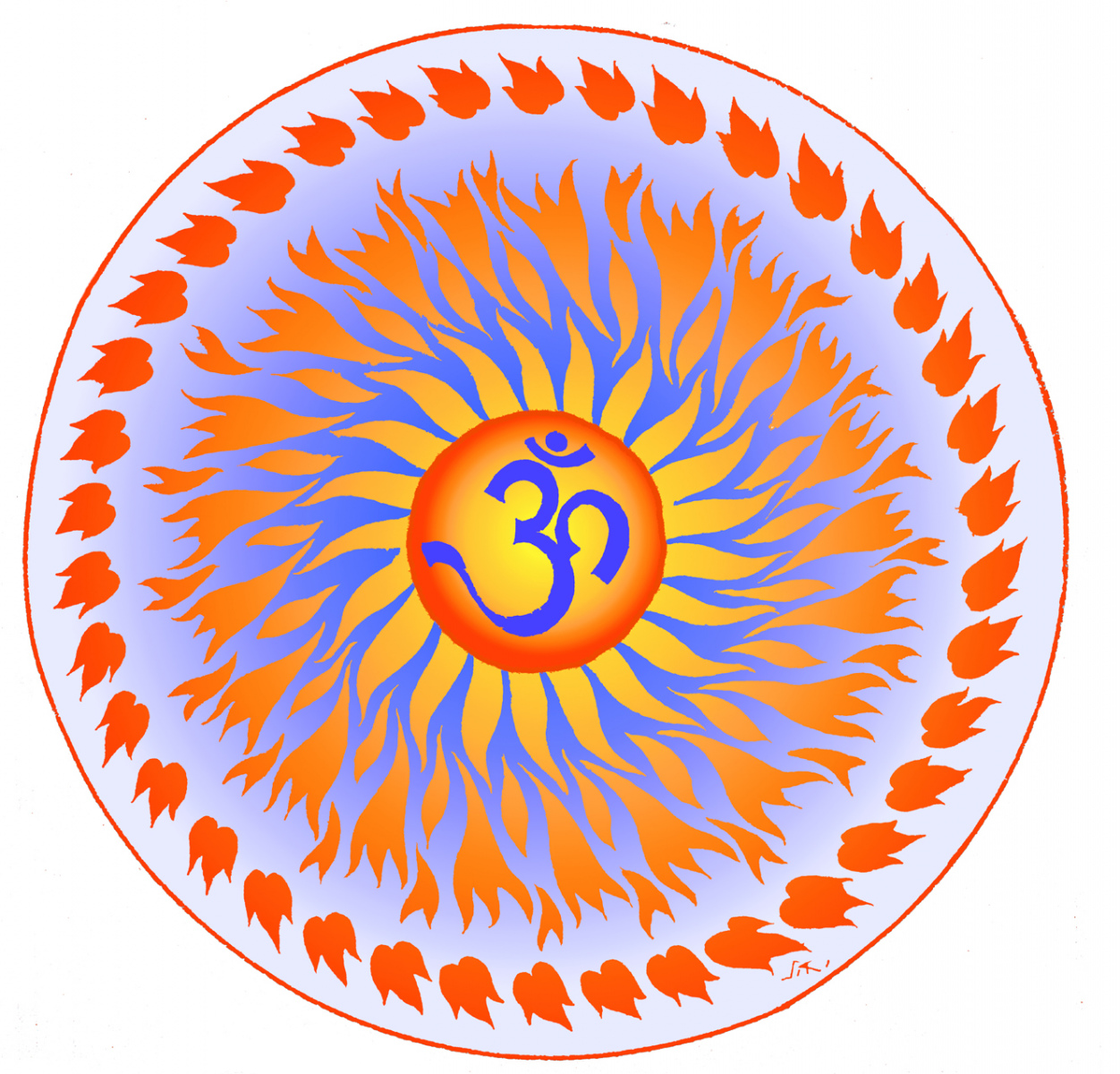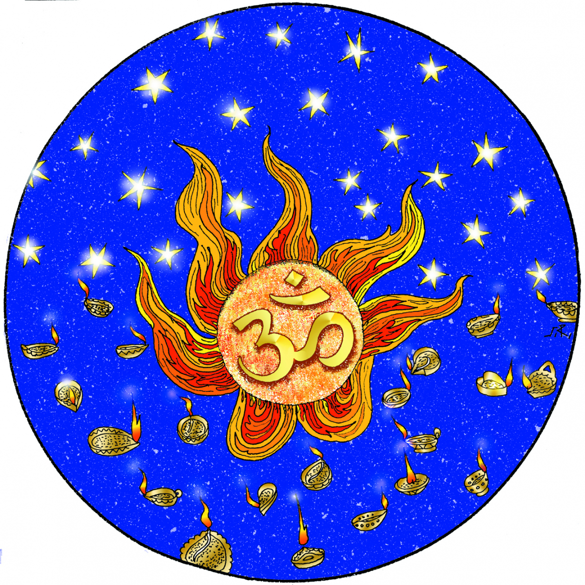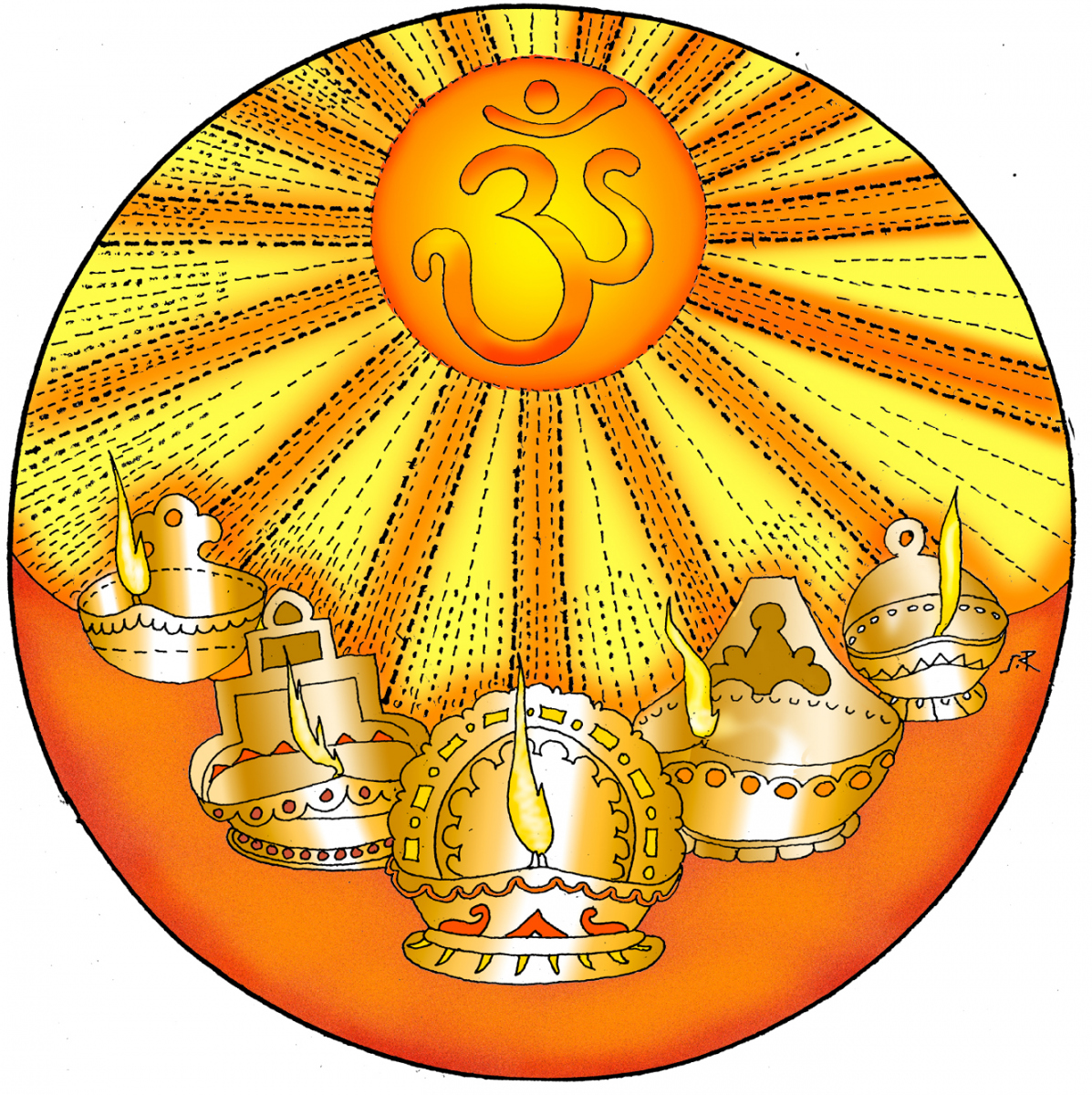Sundaram Rajam: (10 February 1919 – 29 January 2010) was an Indian actor, painter and Carnatic musician from the state of Tamil Nadu. He is known for his series of portraits of the Trinity of Carnatic music. In the 1990s Himalayan Academy purchased his lifetime of work, some 500 paintings, brought them to Kauai and digitized everything to preserve this amazing spiritual resource. Then for almost 20 years he painted the covers of all our books, a series for The Vedic Experience, Tirukural, sacred symbols and from 2002-2004 the precious illustrations for The Guru Chronicles.