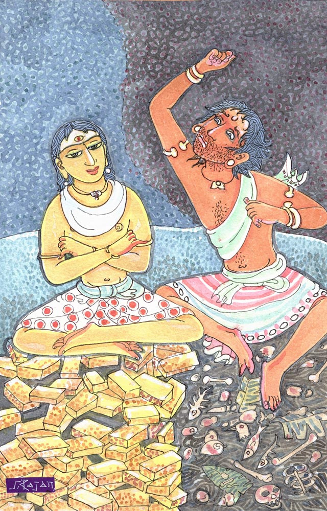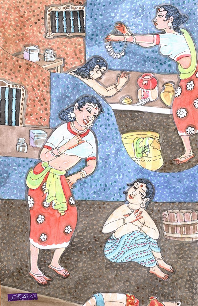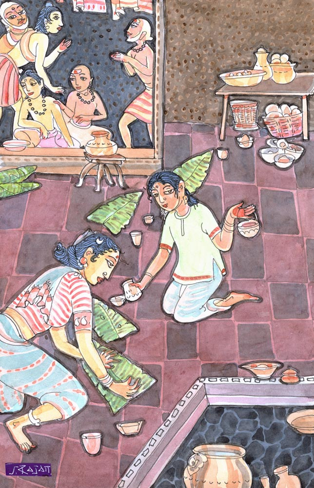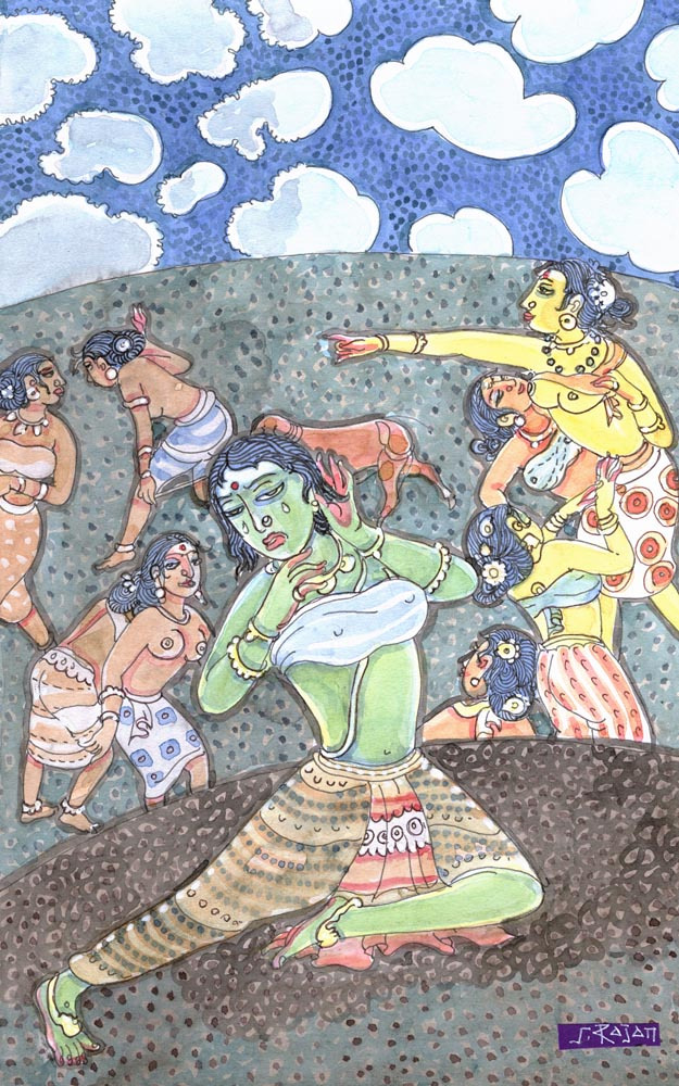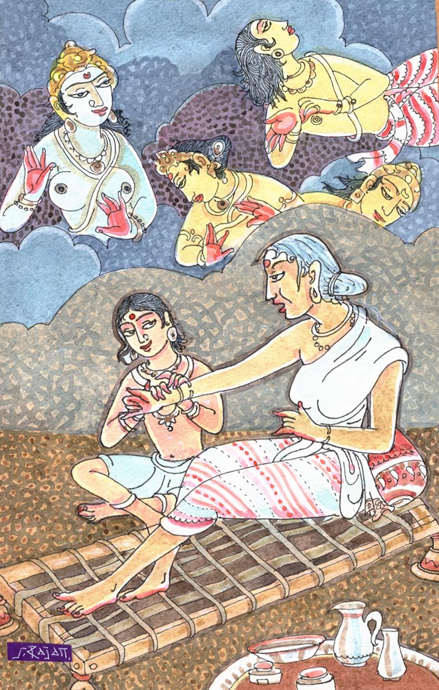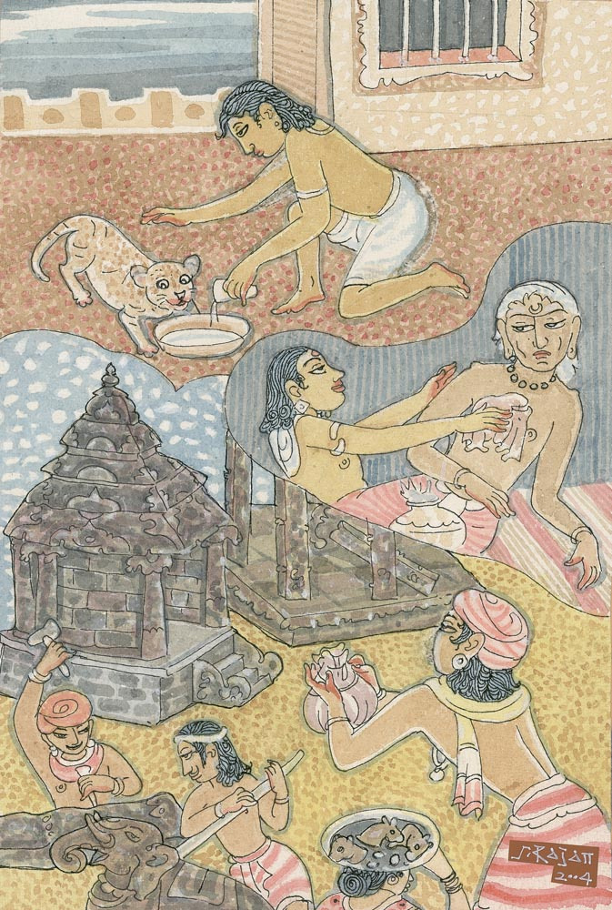 Sundaram Rajam: (10 February 1919 – 29 January 2010) was an Indian actor, painter and Carnatic musician from the state of Tamil Nadu. He is known for his series of portraits of the Trinity of Carnatic music. In the 1990s Himalayan Academy purchased his lifetime of work, some 500 paintings, brought them to Kauai and digitized everything to preserve this amazing spiritual resource. Then for almost 20 years he painted the covers of all our books, a series for The Vedic Experience, Tirukural, sacred symbols and from 2002-2004 the precious illustrations for The Guru Chronicles.
