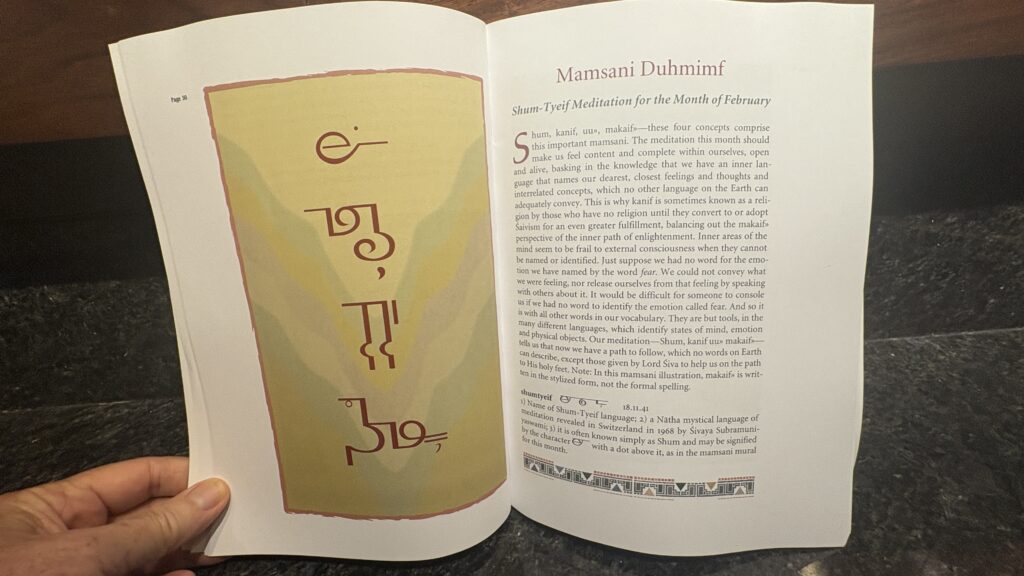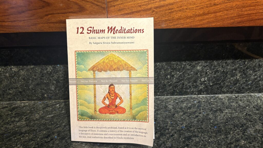 As our CyberCadets know, we are working with Amazon to publish our books. The latest to move into this new system is Gurudeva’s “12 Shum Meditations,” which are collectively called mamsani. The book is 100 pages long and has changed from a wire binding to perfect binding. It is now available on Amazon. The book contains The Advaitin, a remarkable writing from Gurudeva on the pure nondual philosophy. He presented it on June 10, 1968, and we share it here for those wanting to take a deep dive to balance this January day.