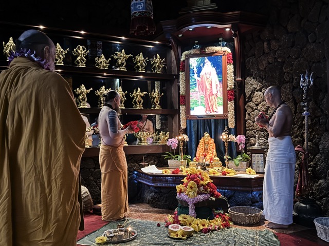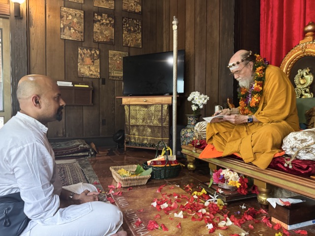 Our 2024 Annual Founder Event continues. Yesterday morning we observed several diksha ceremonies. The first being for Sadhaka Shankaranatha who received his Samaya Diksha, or “Mantra Diksha” by which he is expected to chant the Panchakshra Mantra, “Namah Shivaya” every day. Following the diksha, Niraj, who is visiting from London, sat before Satguru to take his vows as a vratashishya of the Kailaisa Parampara after many years of preparation. Jai!