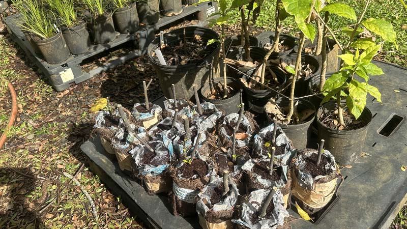 This week we created a new little forest of Rudraksha trees from Nepal. Just 15 trees, so we call it our Nepalese Rudraksha Grove. The seed for this was sown some 2-3 years ago when we did a major article on the Rudrakshas of Nepal. We flew Nikki Thapa from Kathmandu to the deep Khandari Valley that lies just 33 miles from Mount Everest. The story was fascinating, full of facts like Rudraksha sales represent 6% of Nepal’s GNP, and the rather stunning fact that the most expensive single bead every purchased on auction went for $84,000 (it had 33 faces, so one in a billion). Nikki sent us a handful of beads from that valley, and we were amazed how distinctive they were, bigger, lighter in color and even more ornately “carved” than the Indian beads.