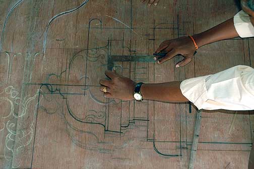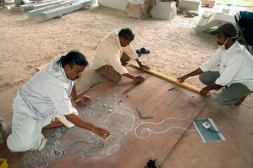 Last month we had showed some photos of the Nandi Mandapam Yesti Stone Drawing. After approval of Bodhinatha Veylanswami, Selvanathan stapathi is redoing a new drawing for the final stone carving.