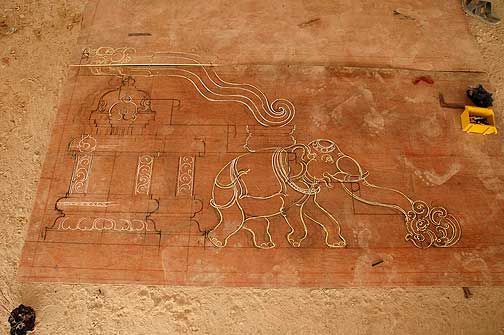 This is the drawing on plywood which was done the last time Stapathi visited the worksite.