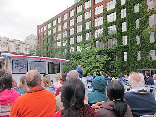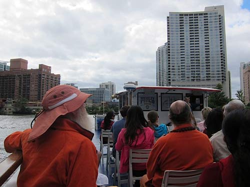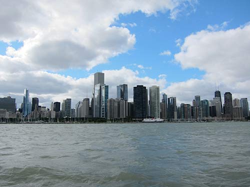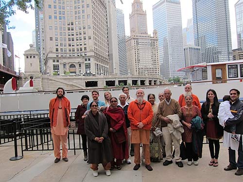Our team on the road is in Utah today, but Sannyasin Siddhanathaswami was able to find the time and bandwidth to send some photos. Here is Bodhinatha on Lake Michigan getting a view of the city.