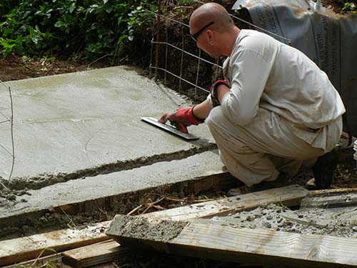 Excess water from extremely heavy rains , added to the normal water flow of the stream, can threaten the integrity of the walls of the waterway and contribute to flooding at the Aadheenam itself. A sluice gate is being installed on the stream bank just below Muruga Hill out on San Marga, to handle this problem. This gate is place just a short distance from where the stream enters our property. Here you can see Sadhaka Rajanatha working on the base of the sluice-way. During heavy rains the we can open the gate and let water that would normally continue on to damage the fragile banks of the stream or flood the aadheenam, run down to the lower ponds by Iraivan and from there to the Wailua River.