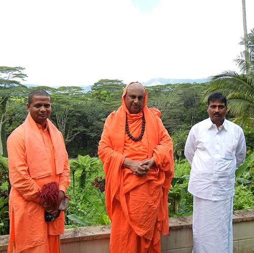 His Holiness Shivarathri Desikendra Mahaswamiji of JSS Suttur Math in Mysore, India, is visiting Hawaii for the first time. He is accompanied by Almatti Swamiji of their Maryland US center, and devotee Mr. Nanjundaswamy.