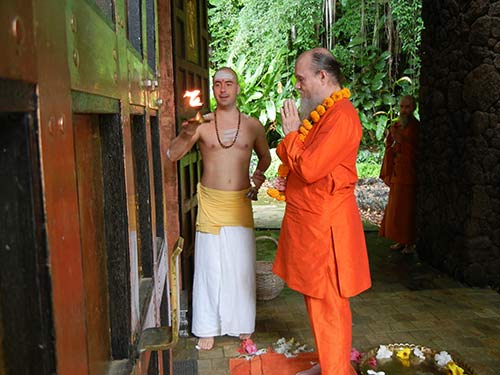 Everyone is happy to have our Satguru back in residence.