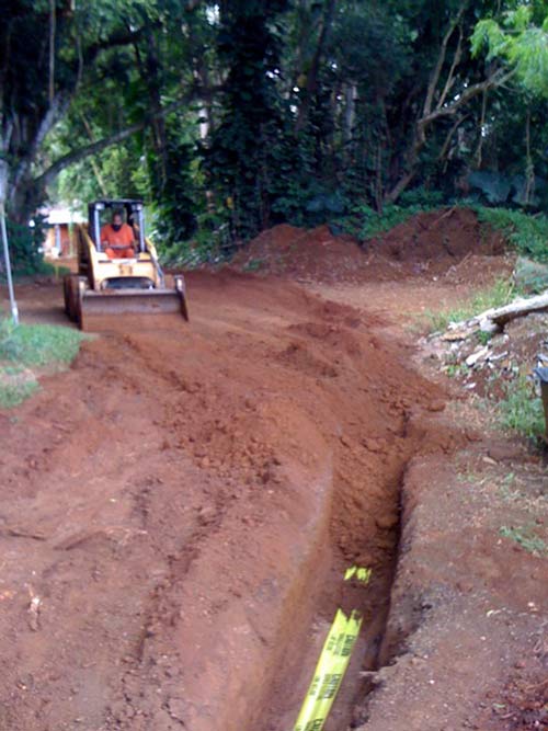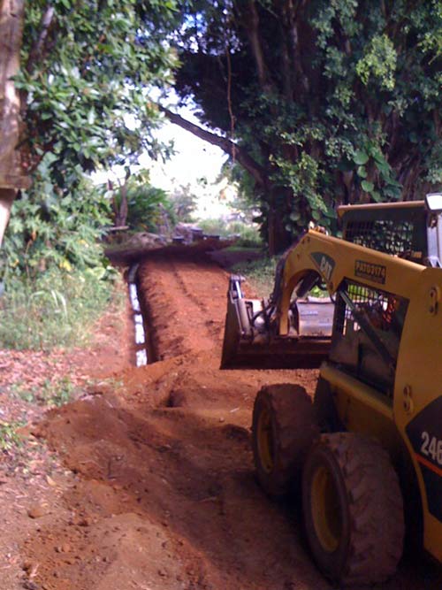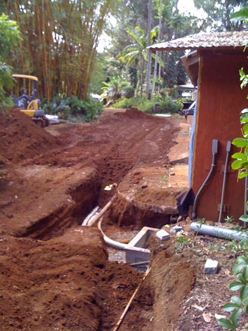 The Siddhidata Kulam team is pushing very hard these past few days. The underground work is somewhat disruptive so they are driving hard to complete it in as short a time a possible. We are blessed now to have fairly dry weather, so it is really good to get all these done before we have any torrential down pours that would fill everything up with water.