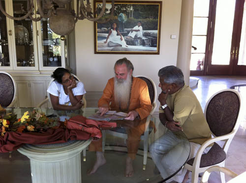 Suriyakumar and his wife, Rushika, are both from Sri Lanka. After discussing a number of projects they are helping the monastery with, they enjoyed having a peek at an unbound copy of The Guru Chronicles as well. Paramacharya enjoyed showing them the Yogaswami chapters.