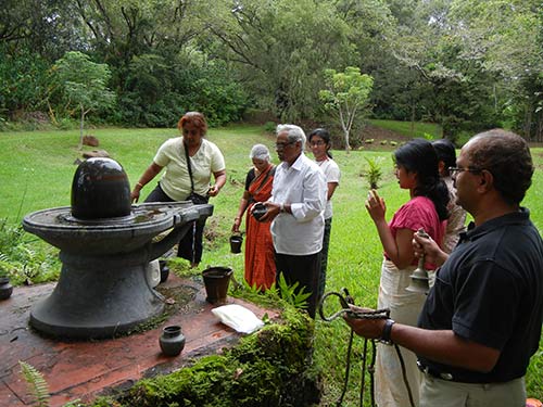 Anil and Jyothi Kondapi, daughters Meera and Manu, and Jyothi's parents are here from Arizona on pilgrimage. They attend satsangs with Chellappa and Banu Deva. Jyothi is interested to become a sishya and is reading the Master Course trilogy to learn what it's all about.