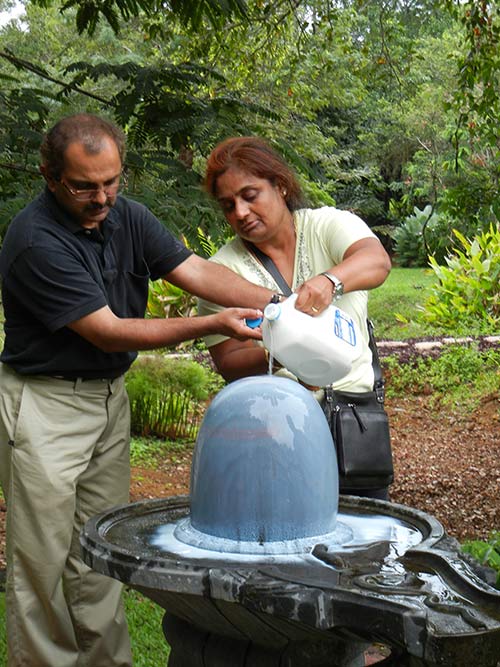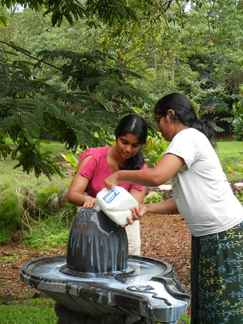 with all the water collected, they're ready to do abhishekam while chanting some mantras.