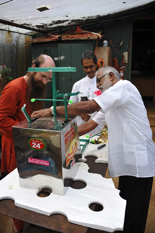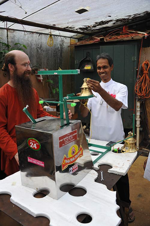 What is it? You are probably asking. This is an automatic drum, bell, cymbal machine! Truly fun! Quite cool, and not the least bit hilarious when you see it running! If you have experienced one of these in use in a Hindu temple before, you will know what we're talking about.