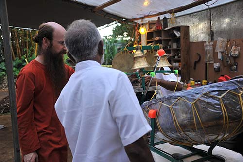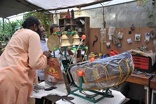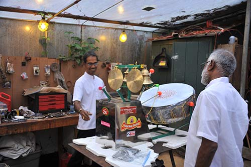 The Singaporean devotees brought with them the new Raja Mela Thalam which the Aadheenam purchased for Kadavul Temple. The Thalam was manufactured in Kanchipuram and shipped to Singapore. There the devotees dismantled it to fit in their luggage.