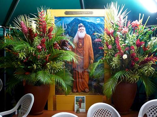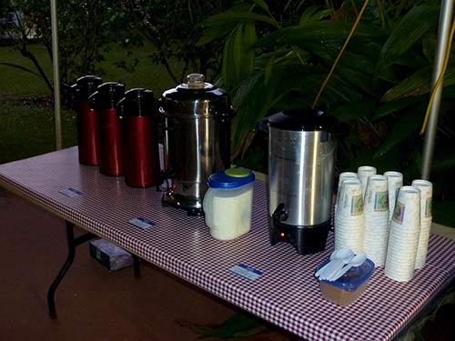 Predawn finds Wailua Mission members in the "Banyan Cafe" doing what they love the most - Serving Guru Bhaktars. Here we are waiting for those wonderful souls who have come from all over the world to honor our beloved Gurudeva.