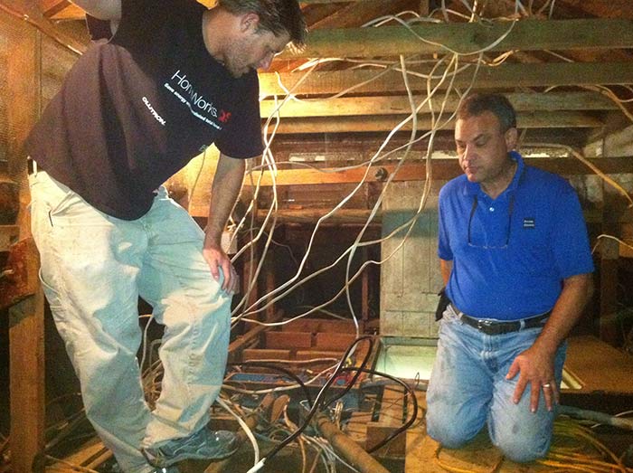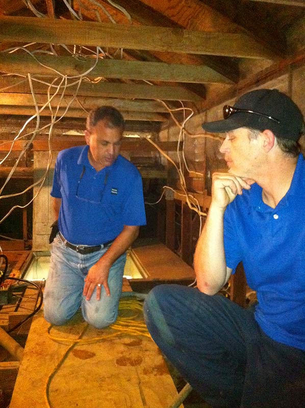 Inside the aadheenam we find thousands of feet of old wiring, going all the way back to the 1950's! Easvan was generous enough to even provide for the cost and wages of two of his top employees to fly to Hawaii to work with him.