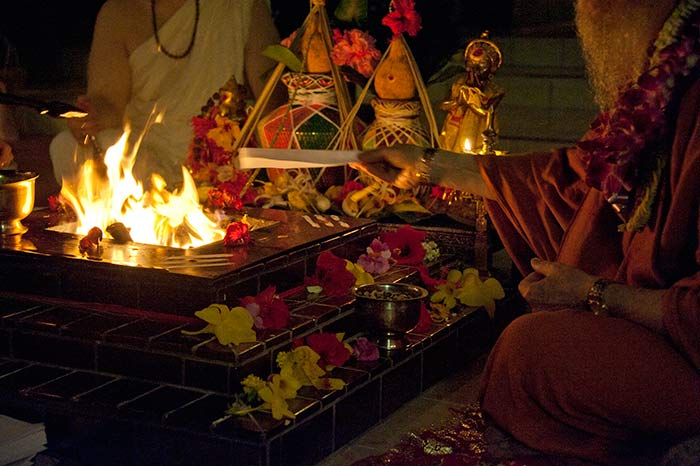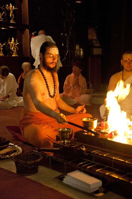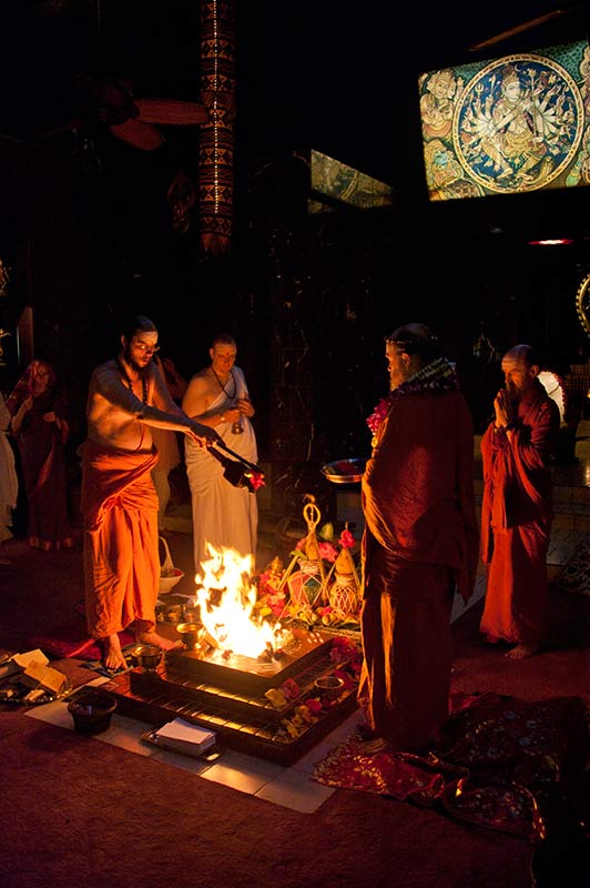 Bodhinatha added a new feature to his Sun One upadesha: he read a story from the Guru Chronicles that related to his talk on the three spiritual goals of life: Self-Realization, Moksha and Vishvagrasa.