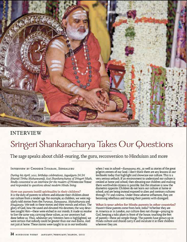 In continuation of our coverage of our Hindu of the Year, 2011, we have this exclusive interview of the Shankarachariya of Sringeri
