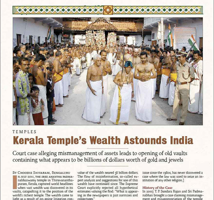 Our upcoming issue of Hinduism Today covers the story of the Keralan temple whose newly uncovered wealth has attracted a storm of news reports.
