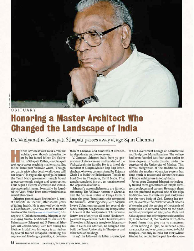 Keralan Temple, Ganapati Sthapati and a Youth Essay in Hinduism Today Jan/Feb/Mar 2012 Issue