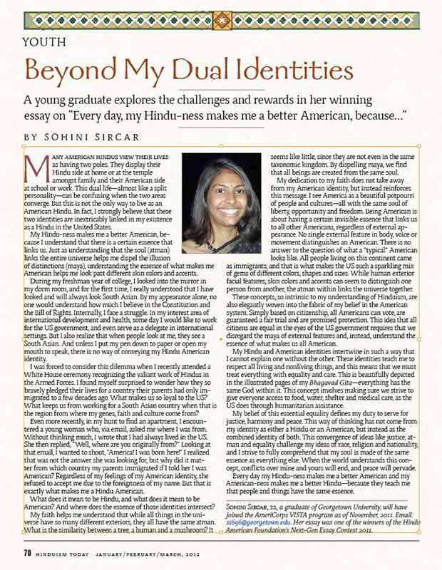 The winning youth essay from the Hindu American Foundation's NextGen contest on being Hindu and being American