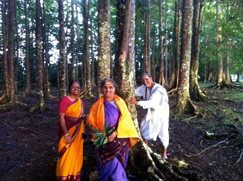 We first went to the Sacred Rudraksha Forest. They collected some Rudraksha fruits. He knew if you dug beneath the ground naturally cleaned and polished seed pods were there and he collected a few. He actually knew a great deal about plants as we went on tour. A common ground cover that we consider a common weed difficult to control he said "if one has gout make a juice from the leaves and take three times, only three times".