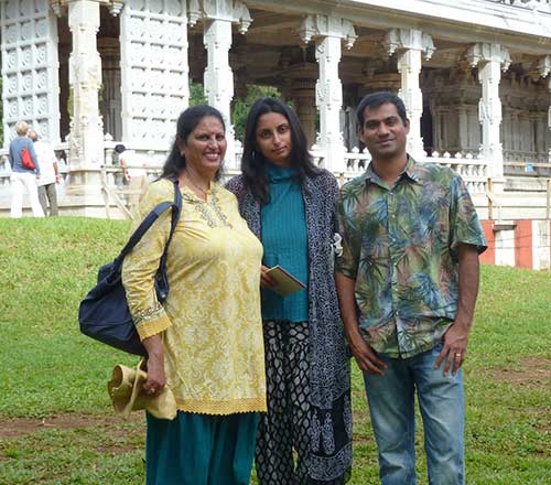 Shwetha Hegde on the left is visiting from Mumbai and was very inspired with Gurudeva's vision. Such a wonderful soul. Her family built a temple from the ground up just outside of Bangalore. Her daughter Natasha, middle, who lives in California was inspired to bring her mother to Kauai. Neil Vaz from California is also traveling with them.