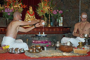 Sadhaka Tejadevanatha is the pujari with Sadhaka Satyanatha assisting.