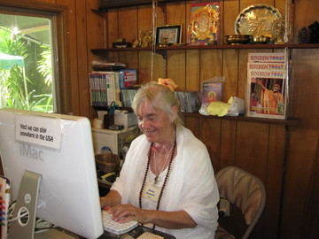 February 21, 2009We are blessed to have a vigilant Sivathondar, Shama Kumaran. She is retired from the working world and daily offers her depth of understanding of Gurudeva's teachings to our guests arriving from all parts of the globe.