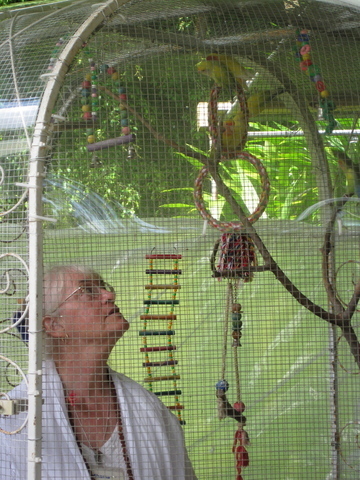 The love birds are sweet pets carefully attended to by Bramacharini Shama Kumaran.