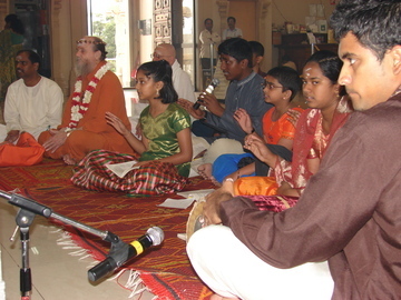 Youth performing bhajan inside the temple