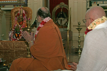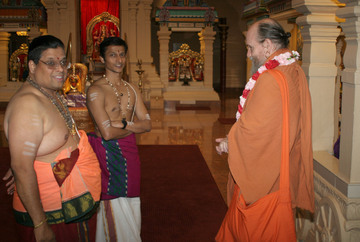 Bodhinatha talks to Gurukal who has been our priest in Adelaide for many years, and with his assistant who arrived in Adelaide in late 2008.