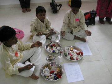Next, performing simple Ganesha Pooja.Youth brought their own little Ganesha from home and they were taught how to conduct Ganesha home pooja. A step by step explaination with mantra chanting and their meanings.