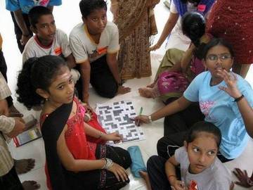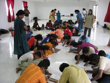 The next game - Youth were divided into three groups and puzzle game relating to Ganesha were given to them to be completed as group effort.They enjoyed this game very much. The younger kids were given a less challenging work of connecting fixed dots outlining Ganesha's figure.