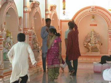 "We have done it''. All smiles and a happy picture after correctly identifying all the 16 Ganesha's murthi names in the temple.