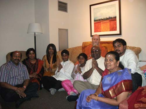 Siva Markandu with extended family. They are the tireless team spearheading the sales of our various publications. The kids had a few tough questions for Bodhinatha.