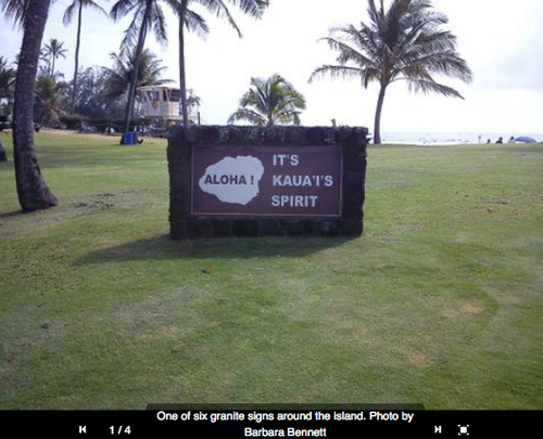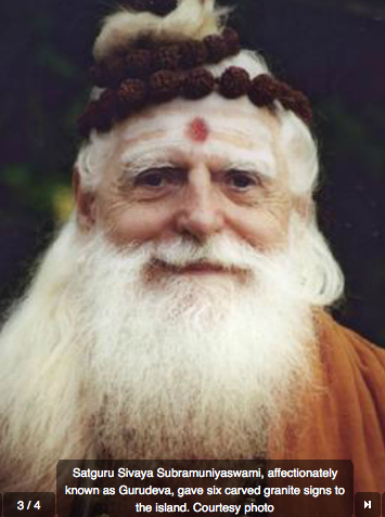 Gurudeva gave many gifts, spiritual and practical, to Kauai island. And his spirit of giving continues in this story from a blog posted recently and printed in a local newspaper. It is a story by Anne E. O'Malley. And it is about six granite signs that dot the island, radiating a message of oneness. Enjoy...