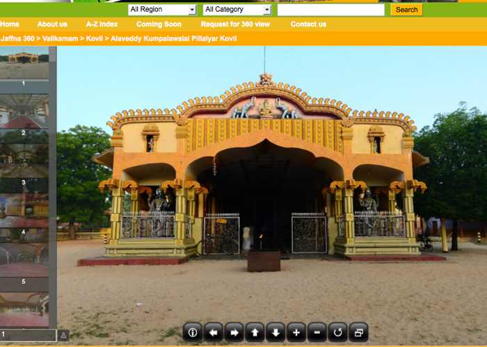 http://www.jaffna630.com has great panoramas of temples and places in the North. of particular interested for our Parampara are these two for Kumbhalavalai Pillaiyar temple in Alaveddy near the Subramuniya Ashram and Nallur temple.