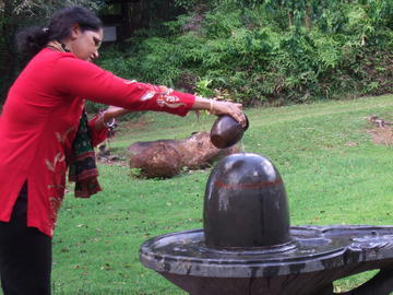 February 26, 2009Shriram and Rohini Udupa (on the left) have been here for several days and attended our Sivaratri pujas. They are from the Hindu Temple of Greater Chicago. Rohini is Hindu Dharma and Philosophy Committee Chairperson of that temple. Today their friends from Honolulu came to visit along with them.
