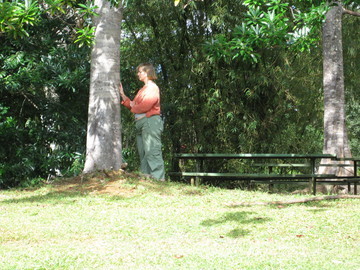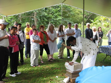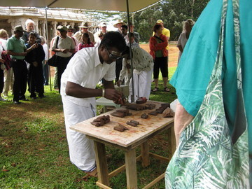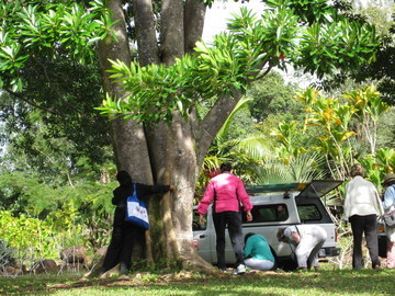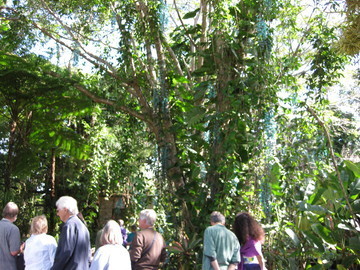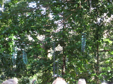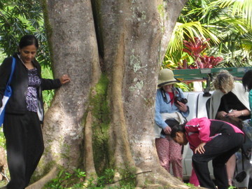Some guests were enjoying the vibration of the sacred Rudraksha trees.
