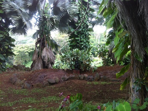 At Kauai Aadheenam during our last retreat the Dandapani mound in Siva's Garden was taken apart in preparation for a major overhaul. It had grown dense and needing of resuscitation, as life often is. Sadasivanathaswami was supported by Tandu Sivanathan and Vel Alahan, and the three of them removed all but a few of the plants, getting it ready for new gems.