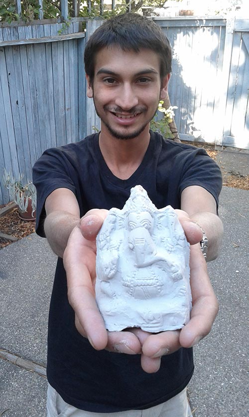 Kartikeya Katir (22), of Sacramento, California, has made clay Ganeshas (four and six inches tall) for Ganesha Chuturthi (coming up on September 18) and is selling them by the dozen for children's painting parties around the country. (In the USA only)