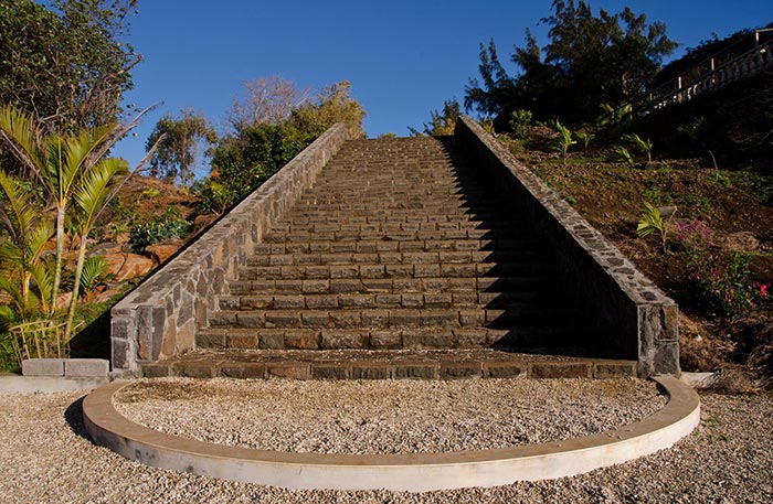 A visitor to our center in Mauritius recently took these marvelous shots of the finished steps to the river as well as the new mandapam Dakshinamurthy.