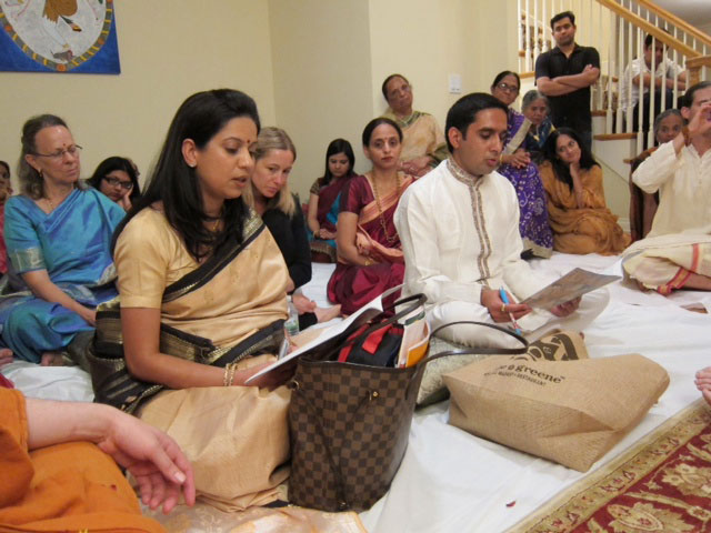 Gaurav and Ripla Malhotra take Arulsishya vratas at Jigisha Patel's satsang in Chicago on Sunday, September 16, 2012.
