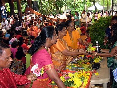 Every month a dedicated team of ladies take care of offerings being brought by devotees.