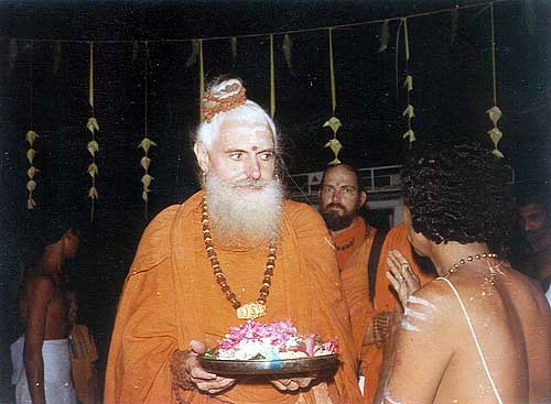 On the right is Subramania Kurukkal with Gurudeva in Sri Lanka. He writes: