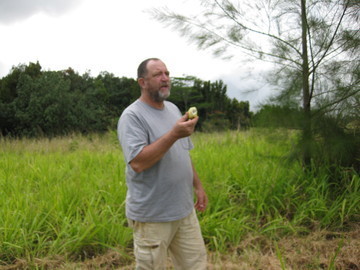 Kulamata Savitri Palani enjoys organic gardening at home in CA, and is interested to learn about the monks efforts to raise organic noni.