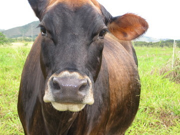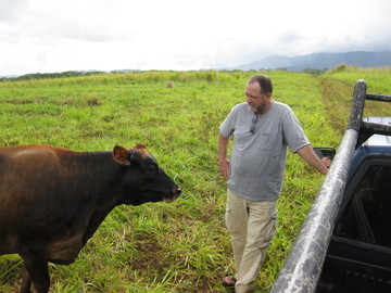 Some of the retired monastery cows are put "out to pasture" on Himalayan Acres. They have the best open range environment any bovine could ask for and do a great job keeping down the guinea grass. This is our dear grand beautiful elder, Chaturthi. She's very friendly and came up to be petted and have a little chat with her human friends.