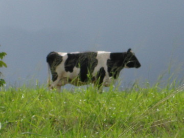 This would be Mimi or Hana, giant Holsteins who are much more aloof. Roaming the vast acreage in search of something new and interesting to eat.