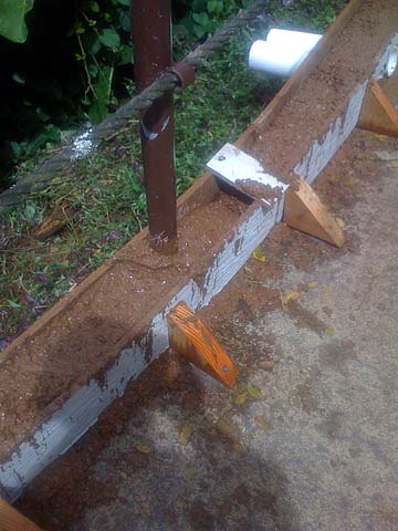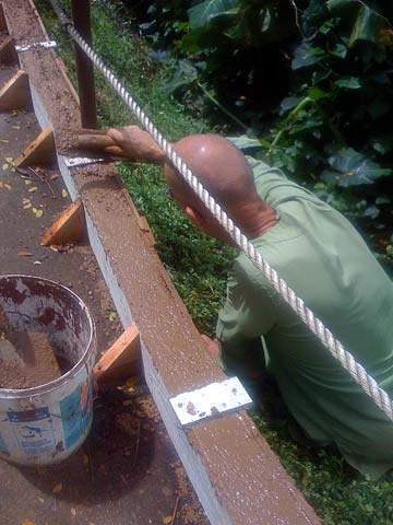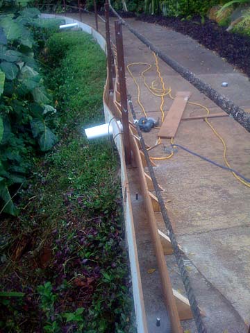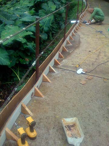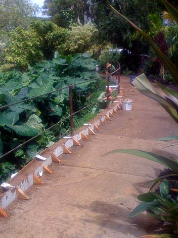 The Siddhidata Kulam is adding a "curb" along the the railing that goes along the pali path to help make sure none of our visitors accidently walks off the path and take a rolls down the slope of Ape plants.