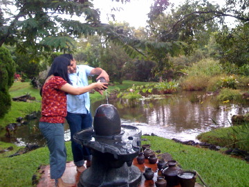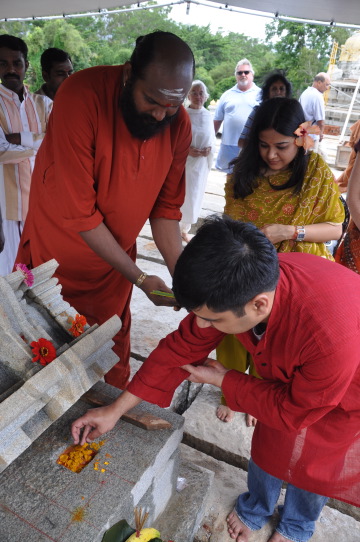 November 10, 2008On that same day, Sharad and Namrata Haldwani were twice blessed: by being here and by participating in the Rajagopuram ceremony. They put some of their prana in the sandalwoood paste that goes under the stone.